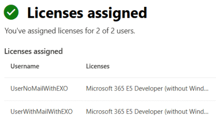 Dann habe ich natürlich einige Zeit gewartet, da die Lizenzzuweisung und das damit verbundene EXO-Provisioning durchaus einige Minuten dauern kann.
