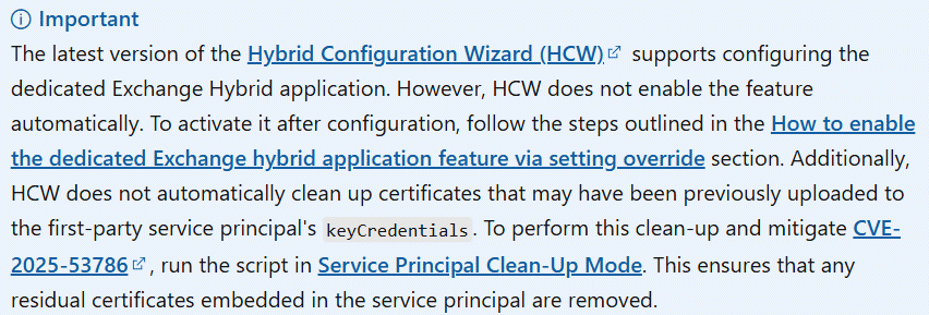 https://techcommunity.microsoft.com/blog/exchange/dedicated-hybrid-app-temporary-enforcements-new-hcw-and-possible-hybrid-function/4440682 - CVE-2025-53786 - Security Update Guide -