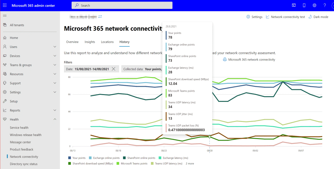 https://docs.microsoft.com/en-us/microsoft-365/enterprise/office-365-network-mac-perf-onboarding-tool?view=o365-worldwide - Network connectivity in the Microsoft 365 Admin Center