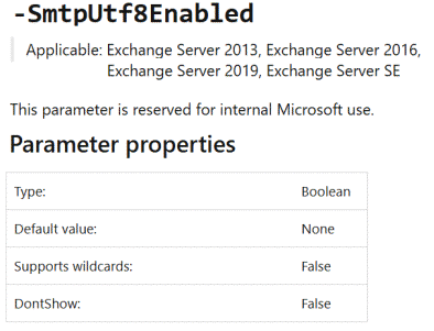 Allerdings ist der Parameter als "for internal Microsoft use" klassifiziert. Allerdings hat Microsoft den Support für "Email Address Internationalization (EAI)" in Exchange Online schon Anfang 2018 aktiviert. Der Support für Exchange 2019 kam etwas später.