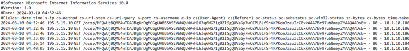 Die Abfrage des OSCP-Status erfolgt bei einer Windows CA z.B. über den IIS, welcher die Requests natürlich protokolliert. In einem IIS-Log könne es dann wie folgt aussehen: