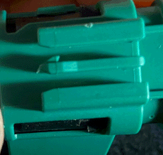 2. Um dann den schwarzen Stecker wieder rein zu drücken, zusätzlich kräftig die rote Sperre seitlich gekippt werden, um eine zweite Sperre zu überwinden. Wenn man es richtig macht, geht es komplett ohne Gewalt.