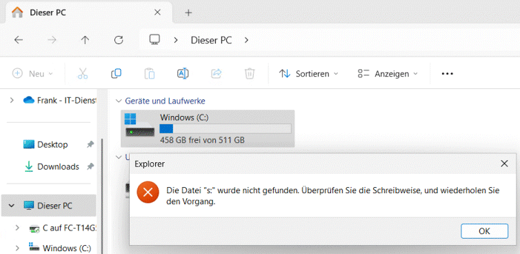 Anstatt der PowerShell habe ich mir die Datei einfach auf den Desktop kopiert